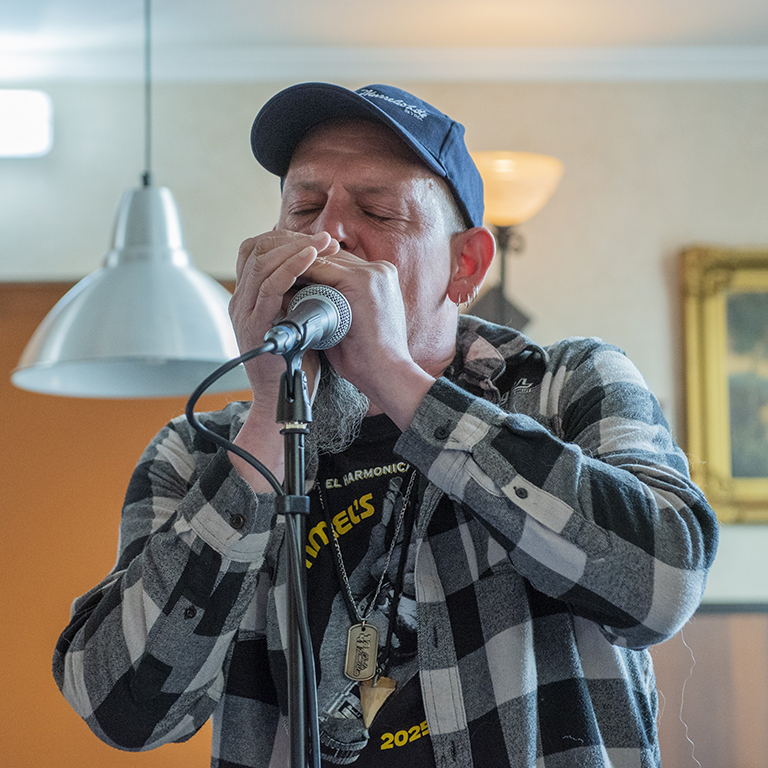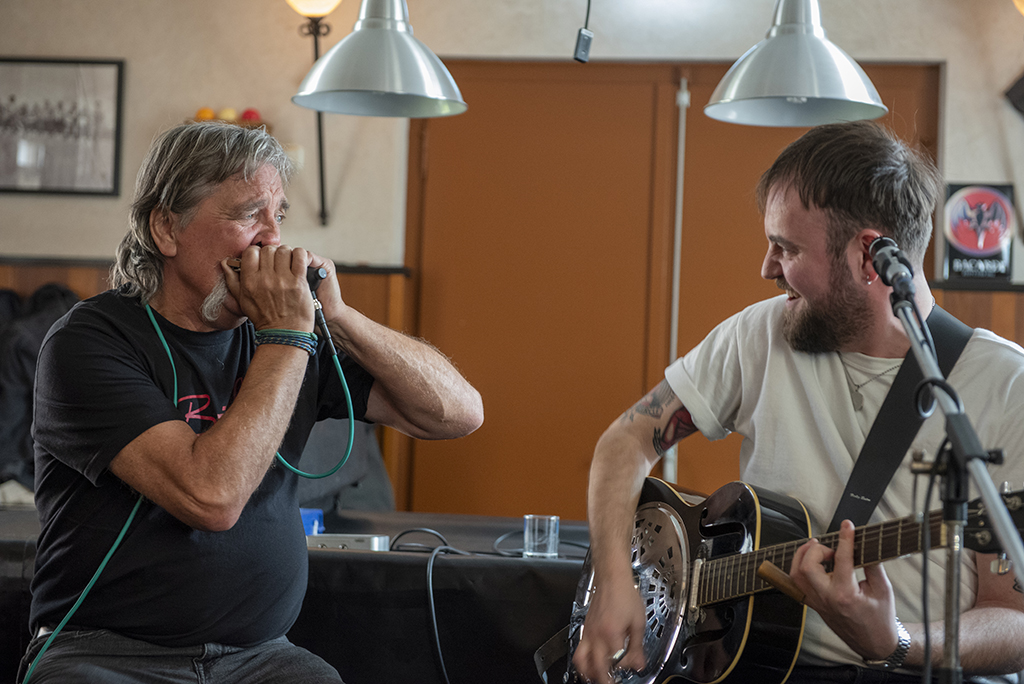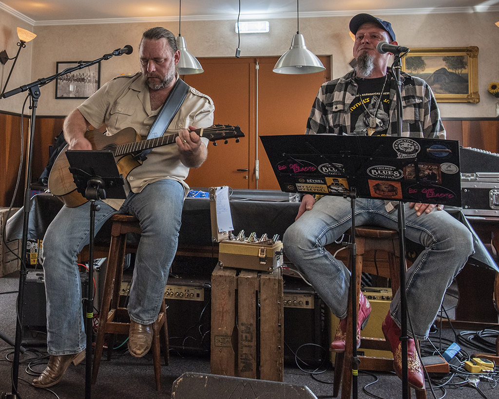 Met wat schuiven met de stoelen en tafels was er gisteren, zondag 30 maart, plek voor 51 muziekliefhebbers tijdens het Bluesbal Beij Reijne Al. De Muddy Road Twins uit Nederweert trapten af, ofwel Maikel van Bogget (mondharmonica, zang) en Peter Verdonschot (zang, gitaar). Zij speelden een kruidige mix van blues, country(rock), gospel en Americana, met de mondharmonica van Maikel nadrukkelijk op de voorgrond.